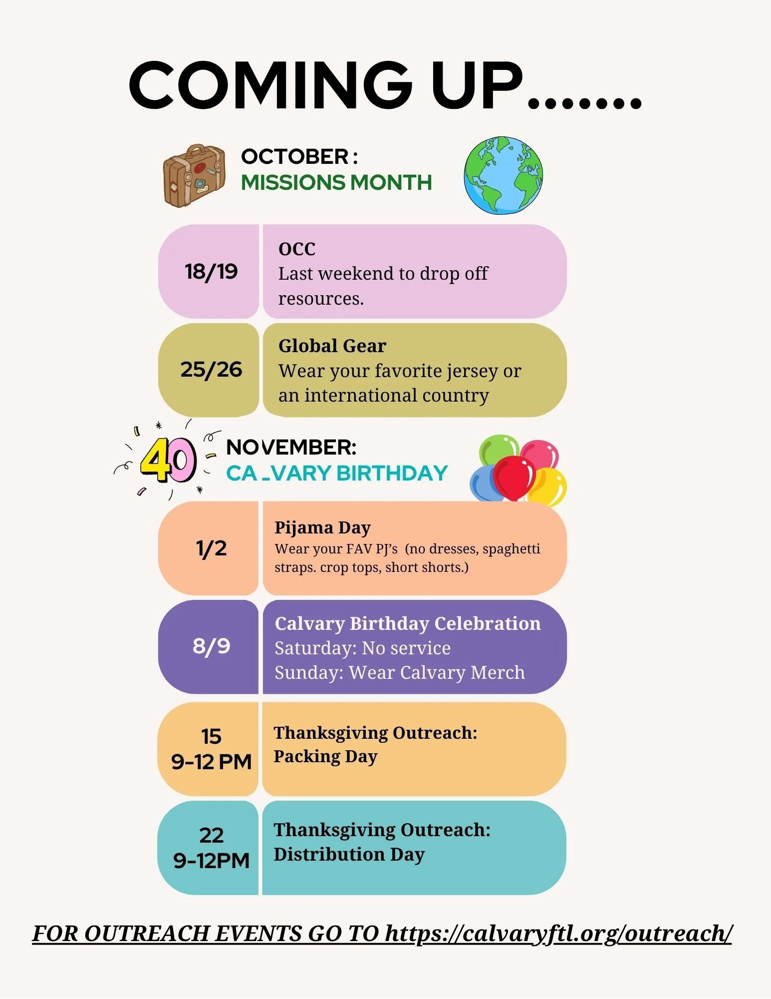 *FOR OUTREACH EVENTS GO TO https://calvaryftl.org/outreach/